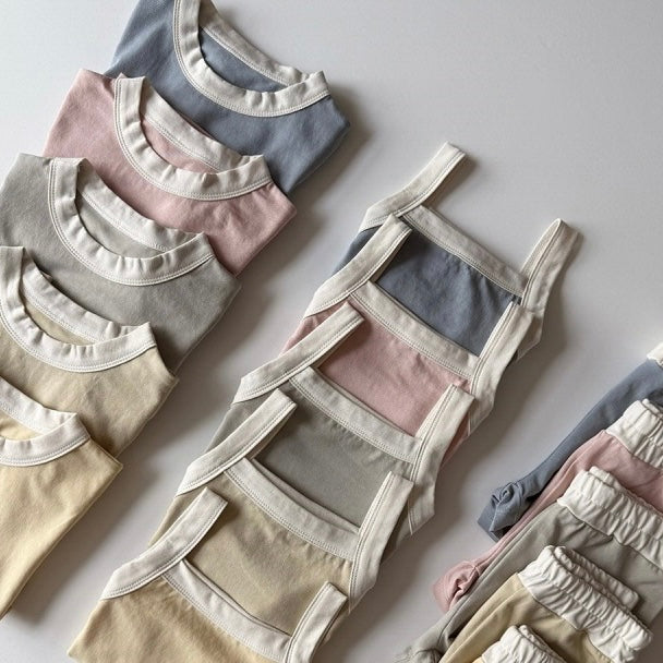 Buttery soft 3 piece lounge set includes a sleeveless tank, short sleeve tee, and matching shorts.