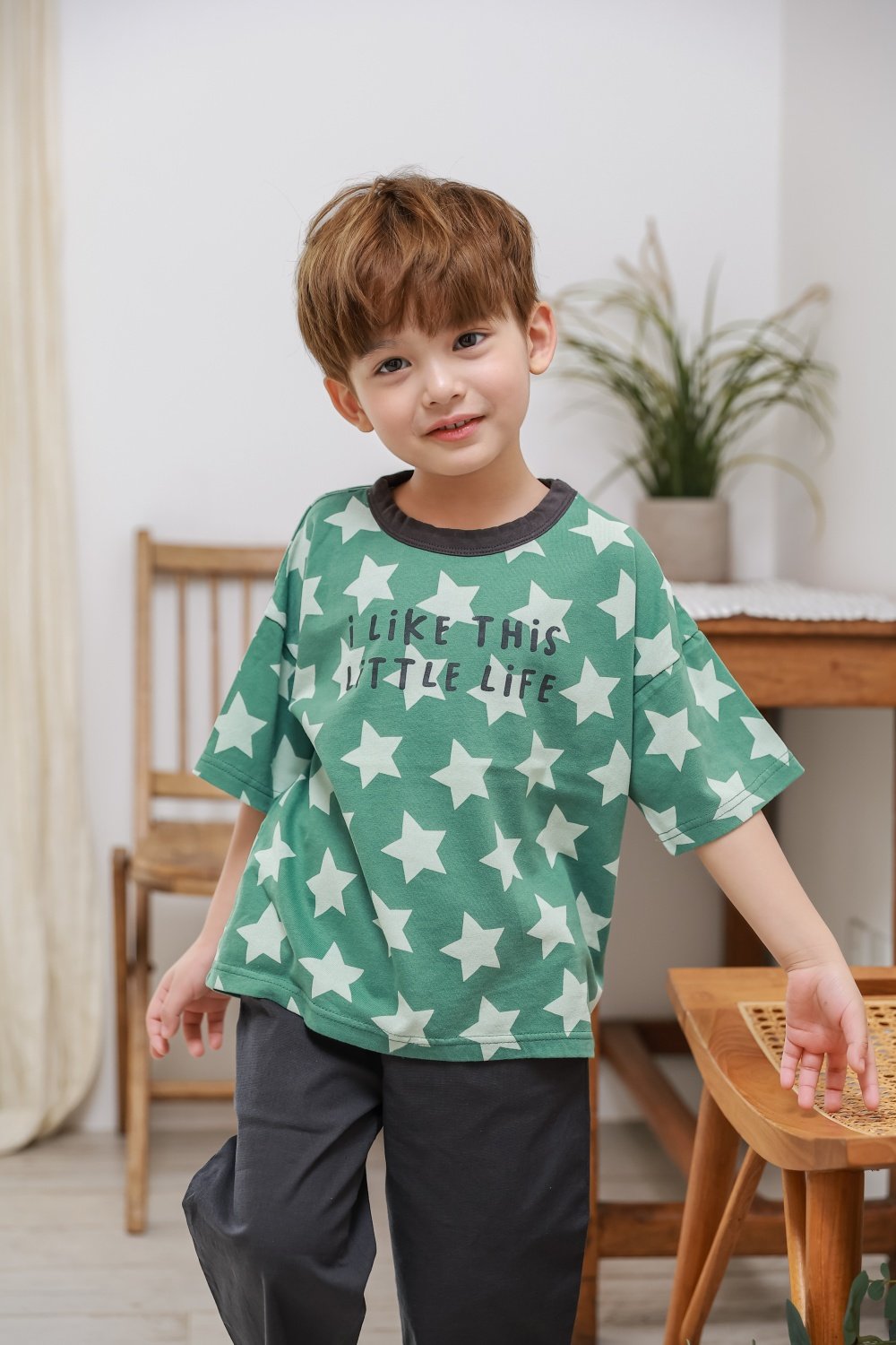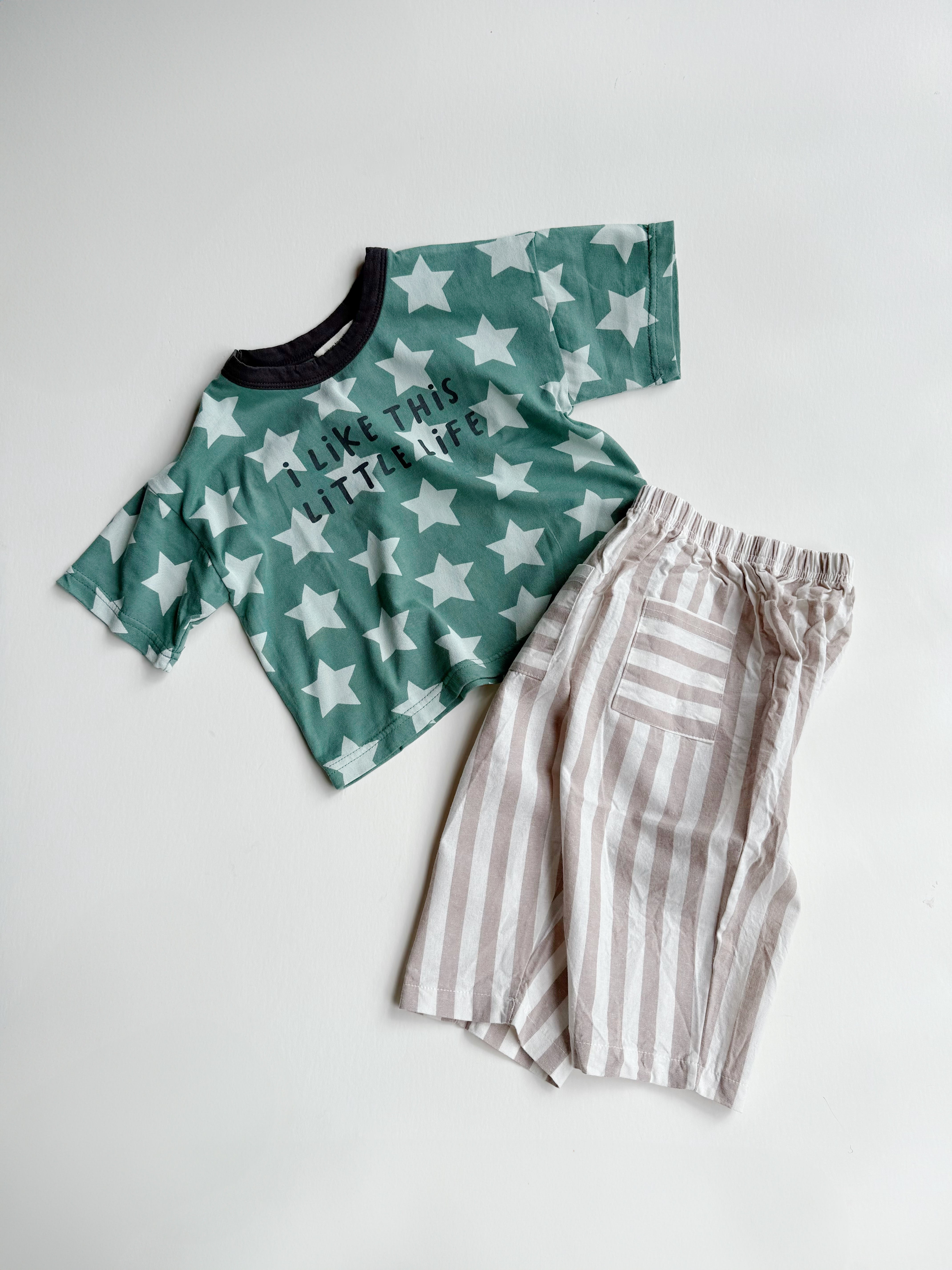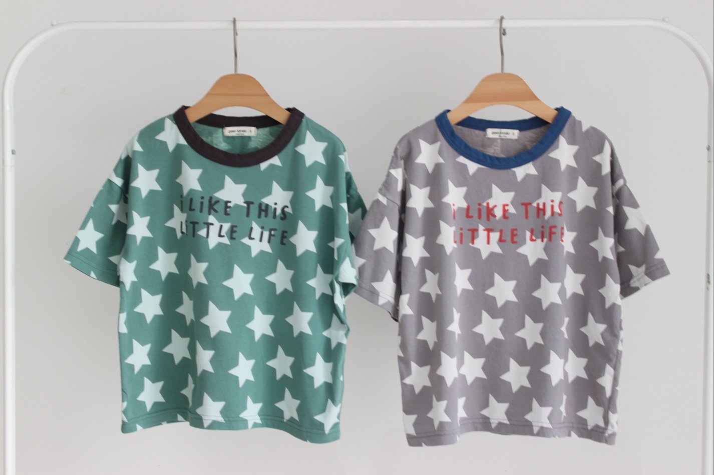 A playful gender neutral star tee featuring "i like this little life" across the front.
