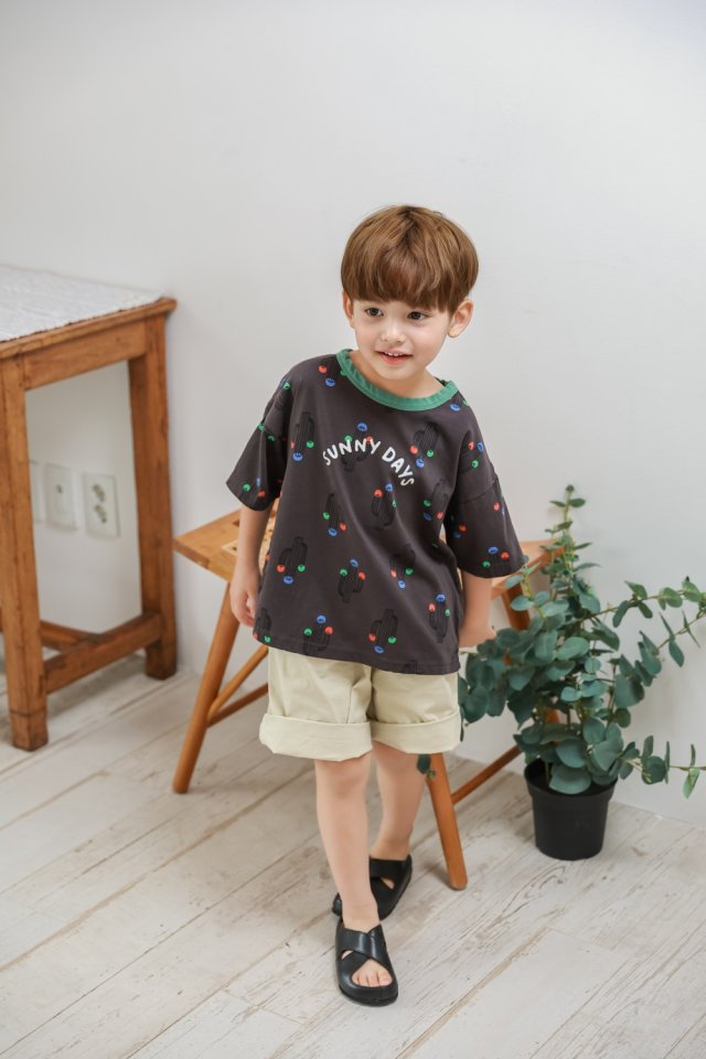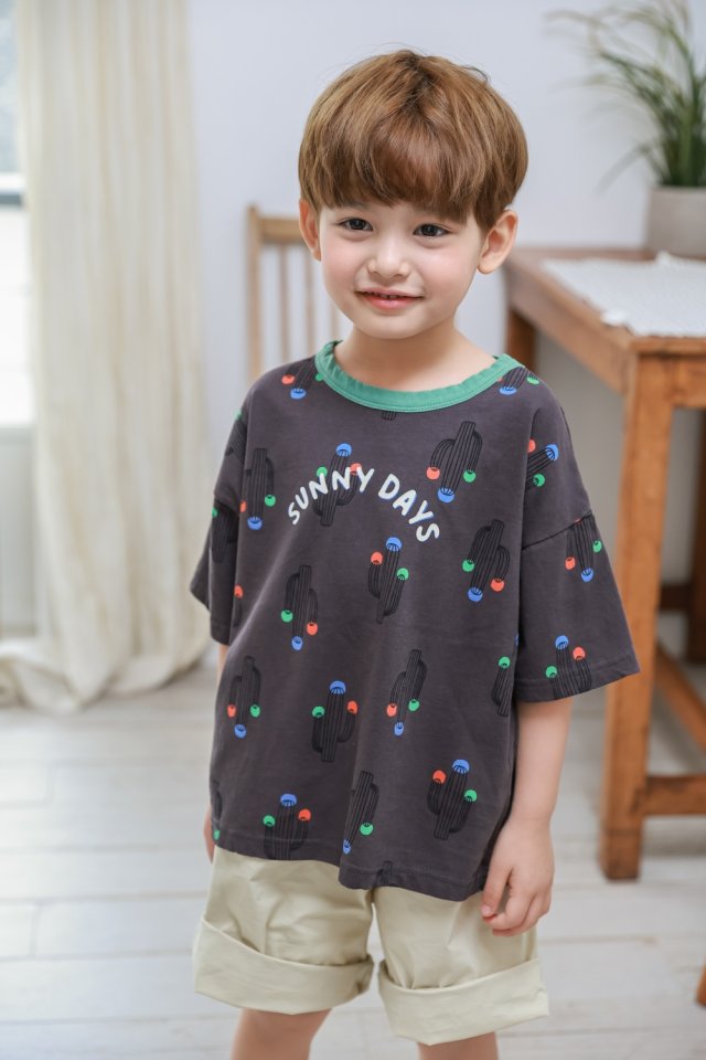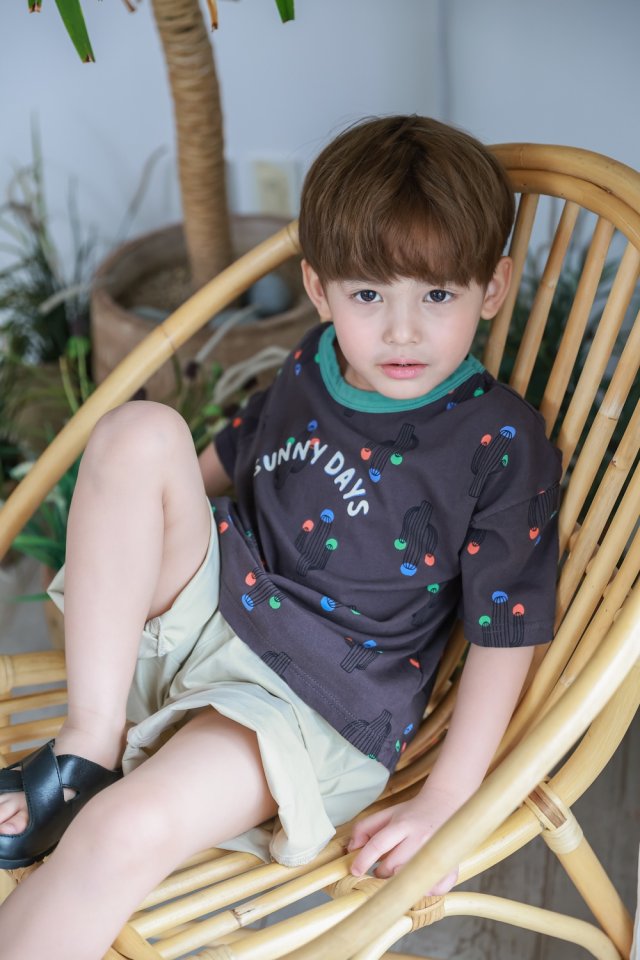 A playful gender neutral cactus sunny days tee featuring a contrast neckline.