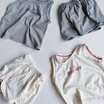A gender neutral tank and matching shorts set featuring "I am brilliant" on the front.