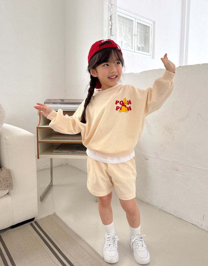 A lightweight sweatshirt and matching sweat shorts featuring your favorite characters.