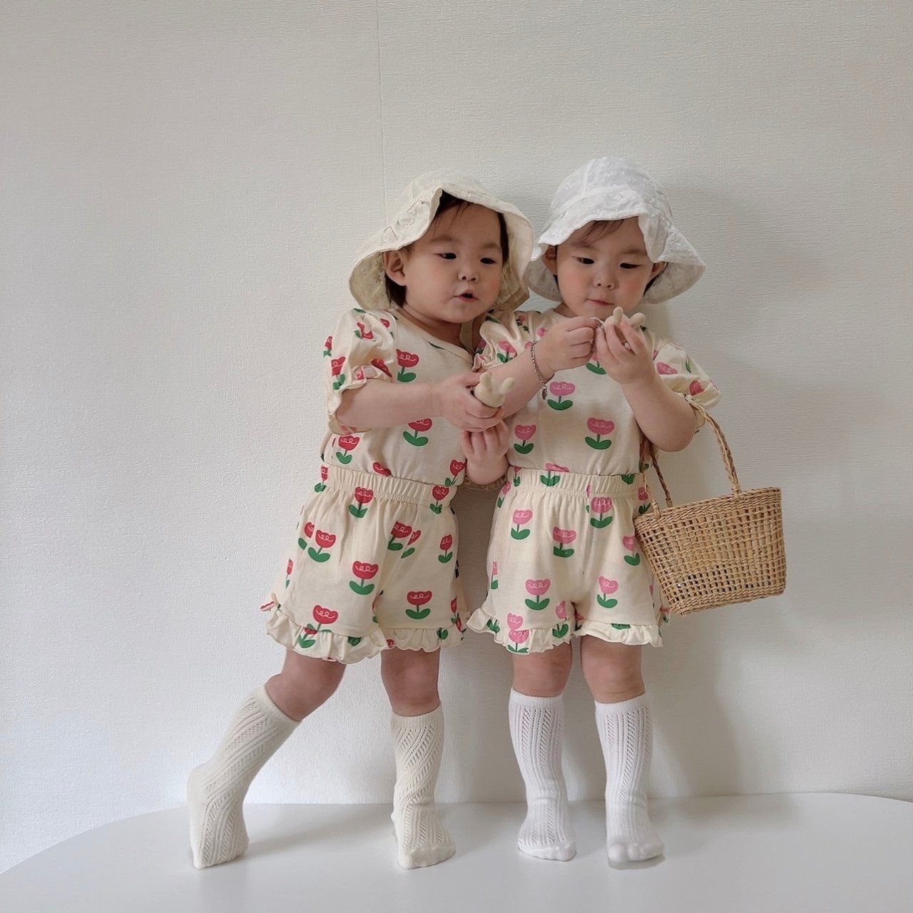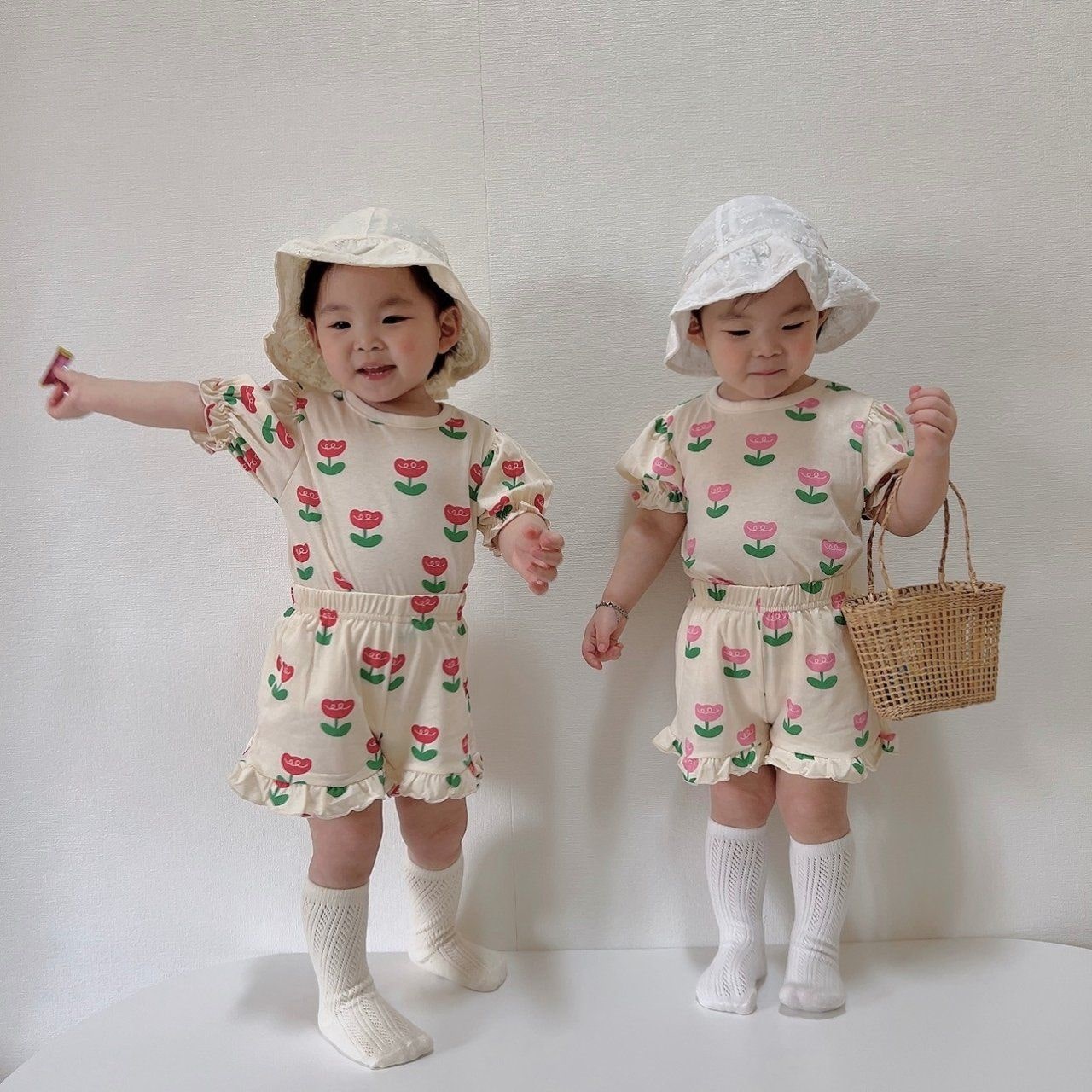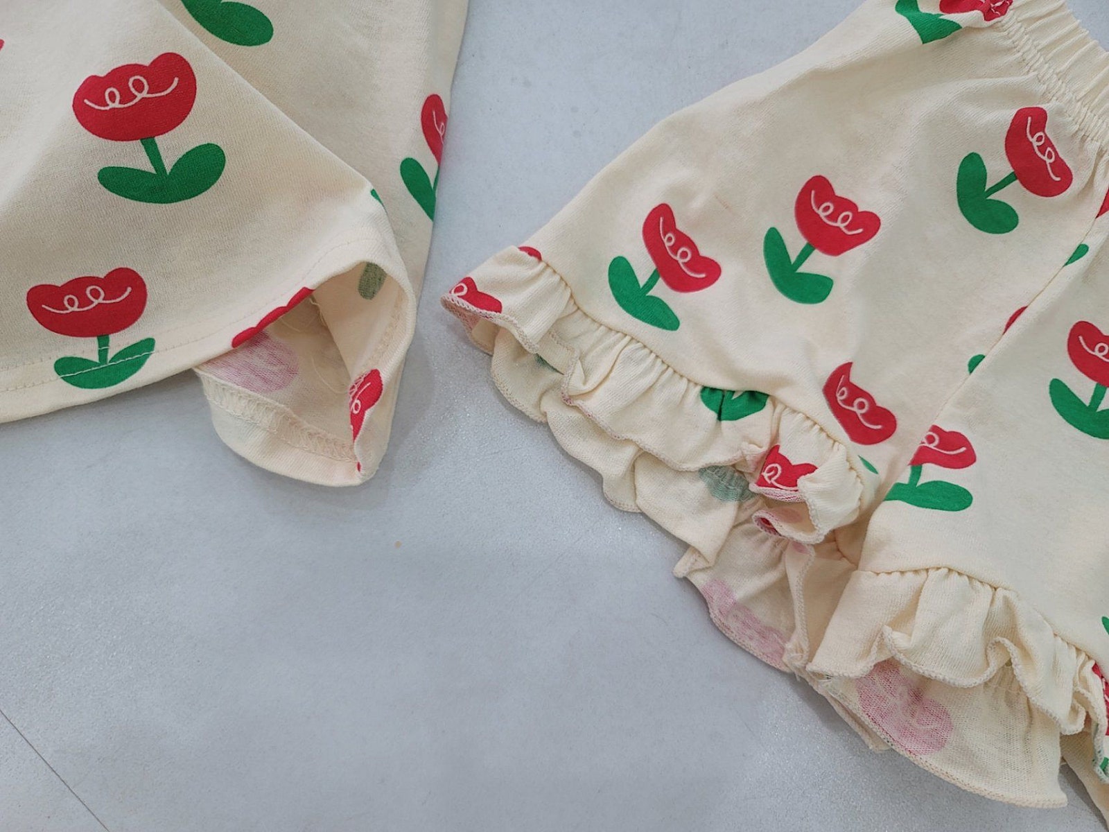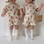 Oversized frill tee and matching shorts featuring an allover tulip print.