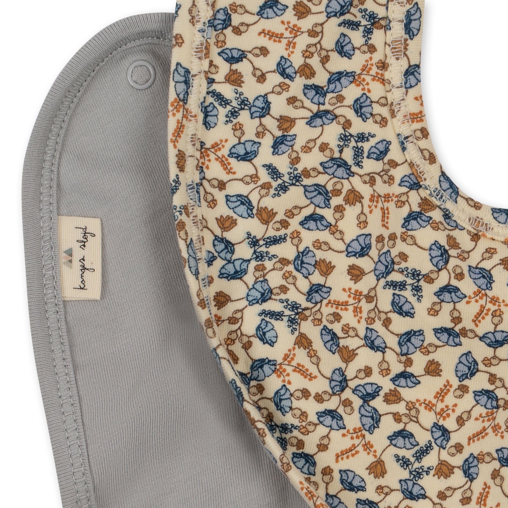 Soft bib made in 95 percent organic cotton and 5 percent elastane, with a hint of stretch. Features snap button closure with three adjustment levels.