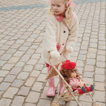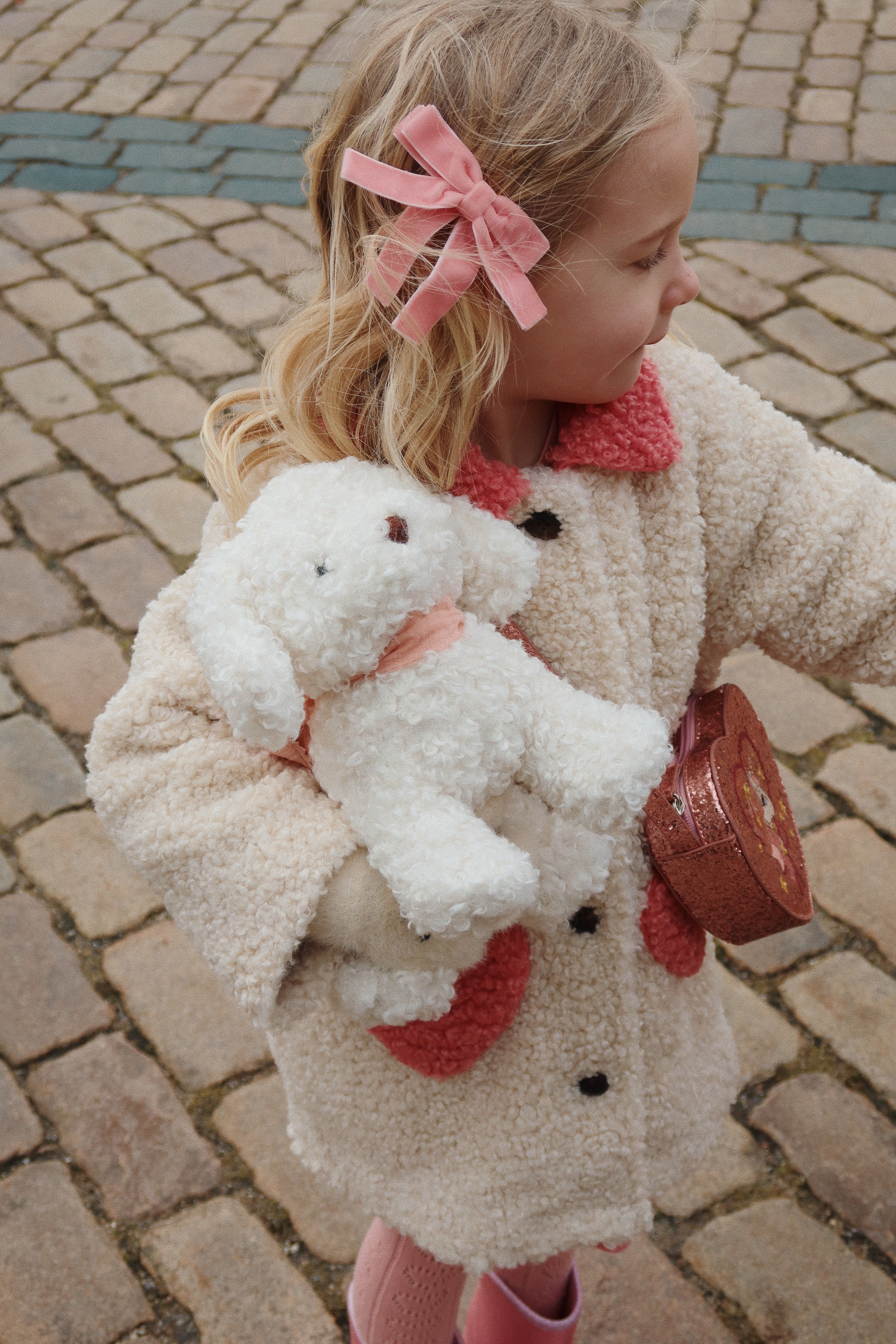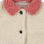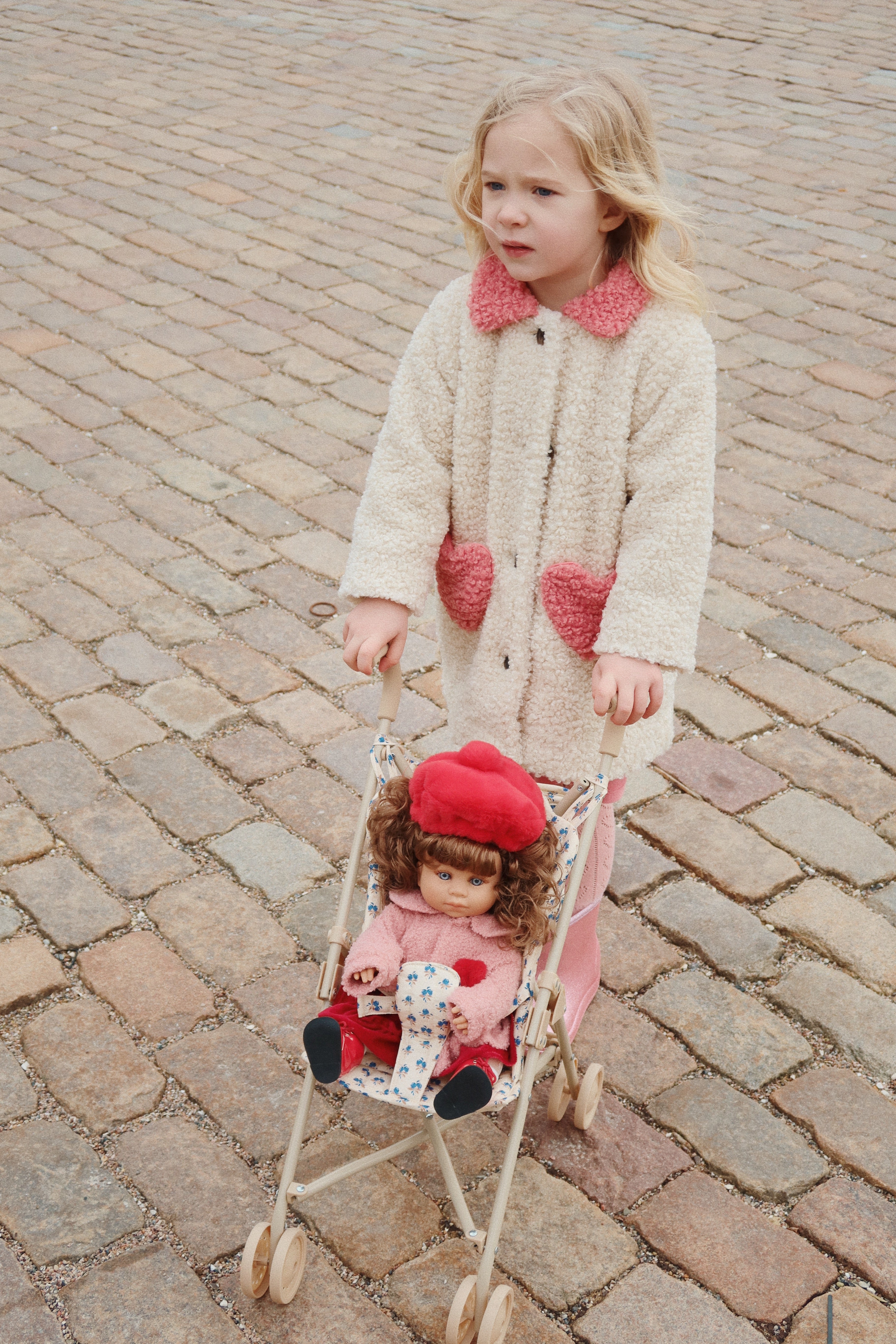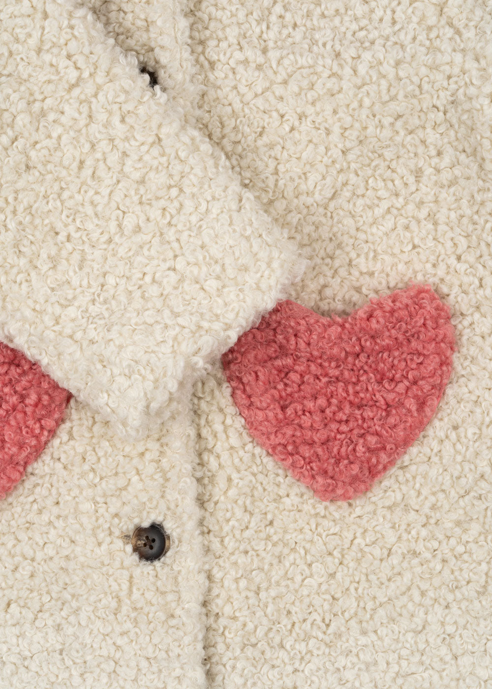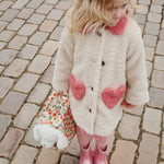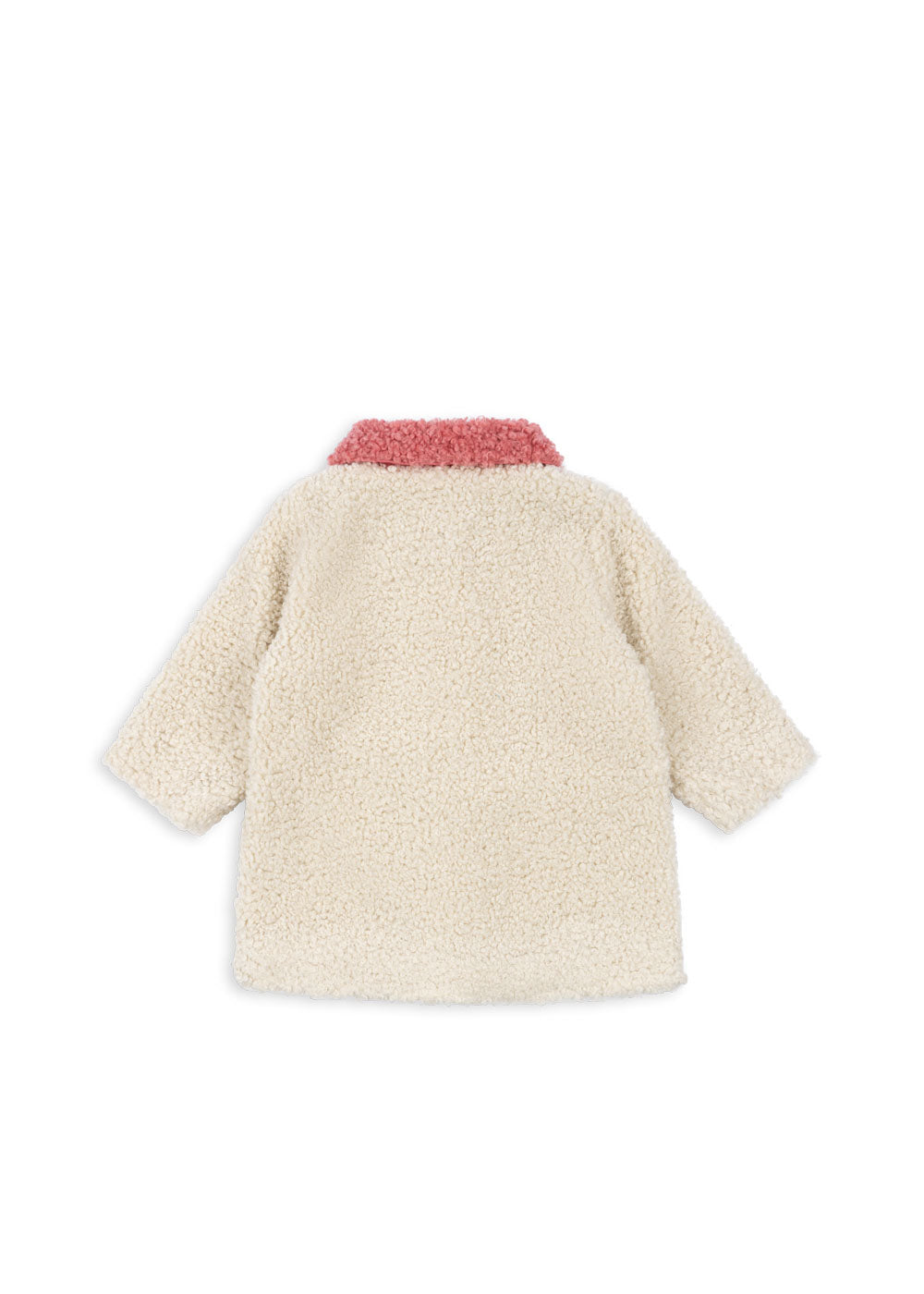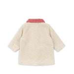 Soft and warm coat in a classic silhouette with a rounded collar, front pockets, and button closure. Materials: Main: 100% polyester Lining: 100% cotton and 100% polyester