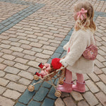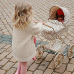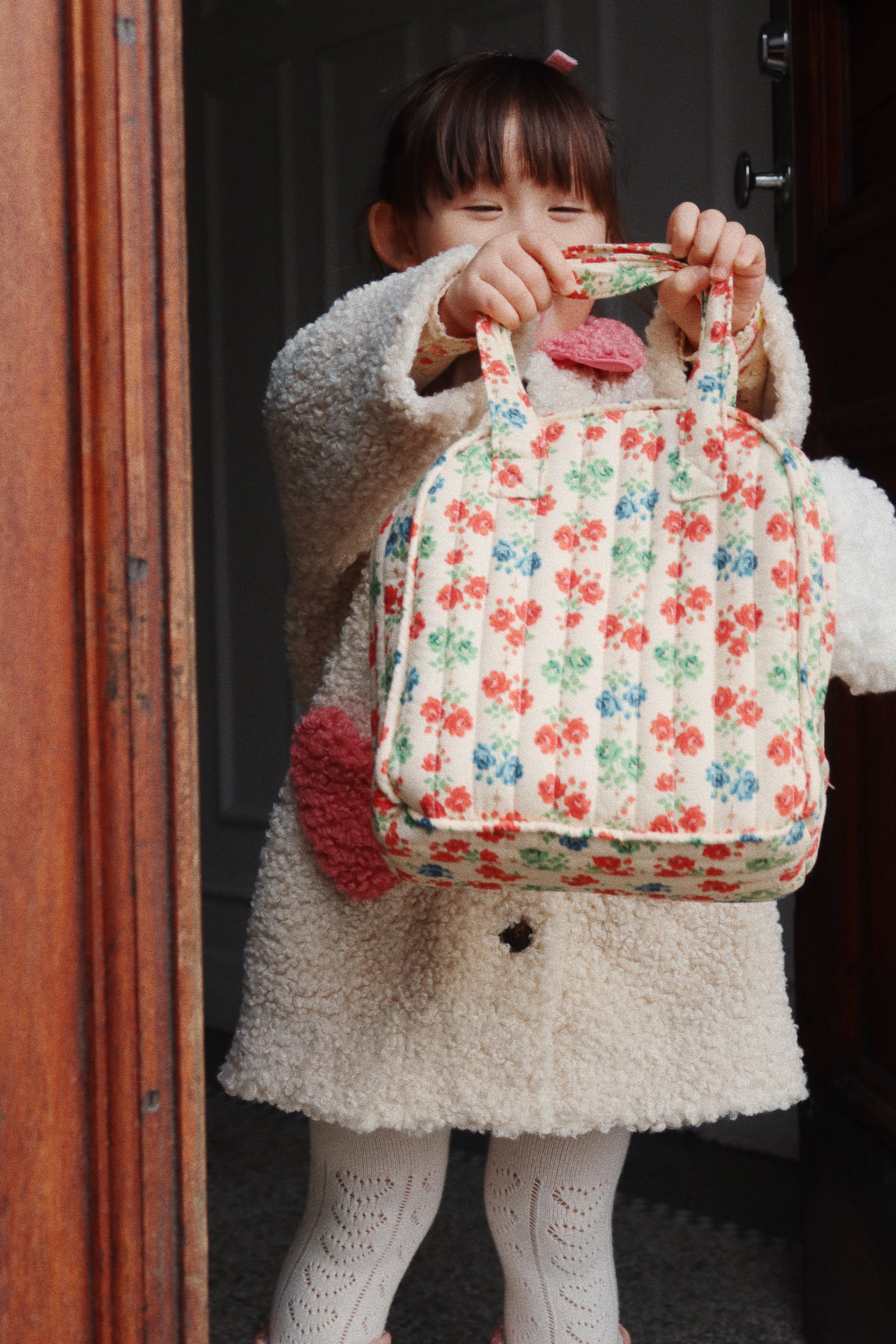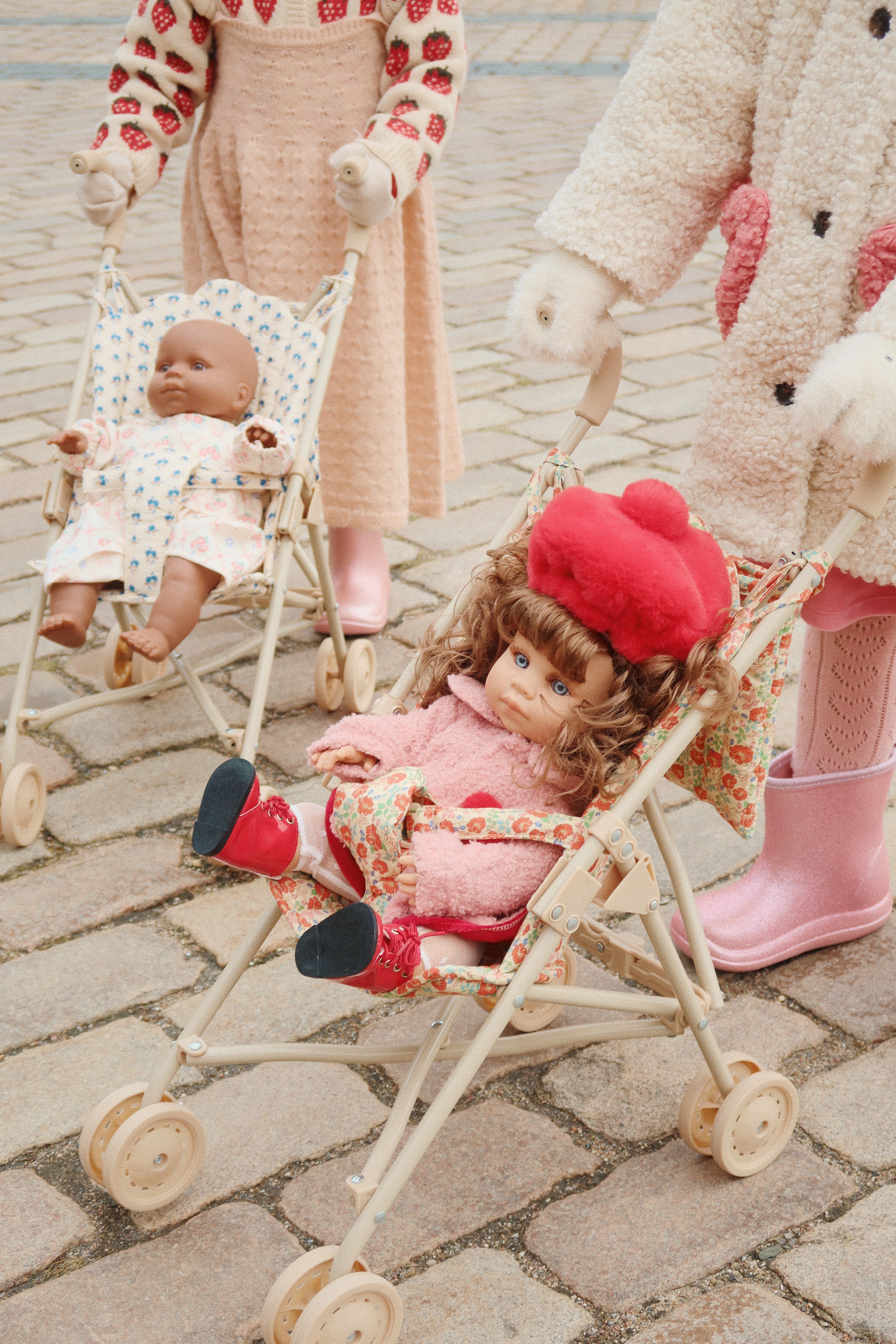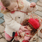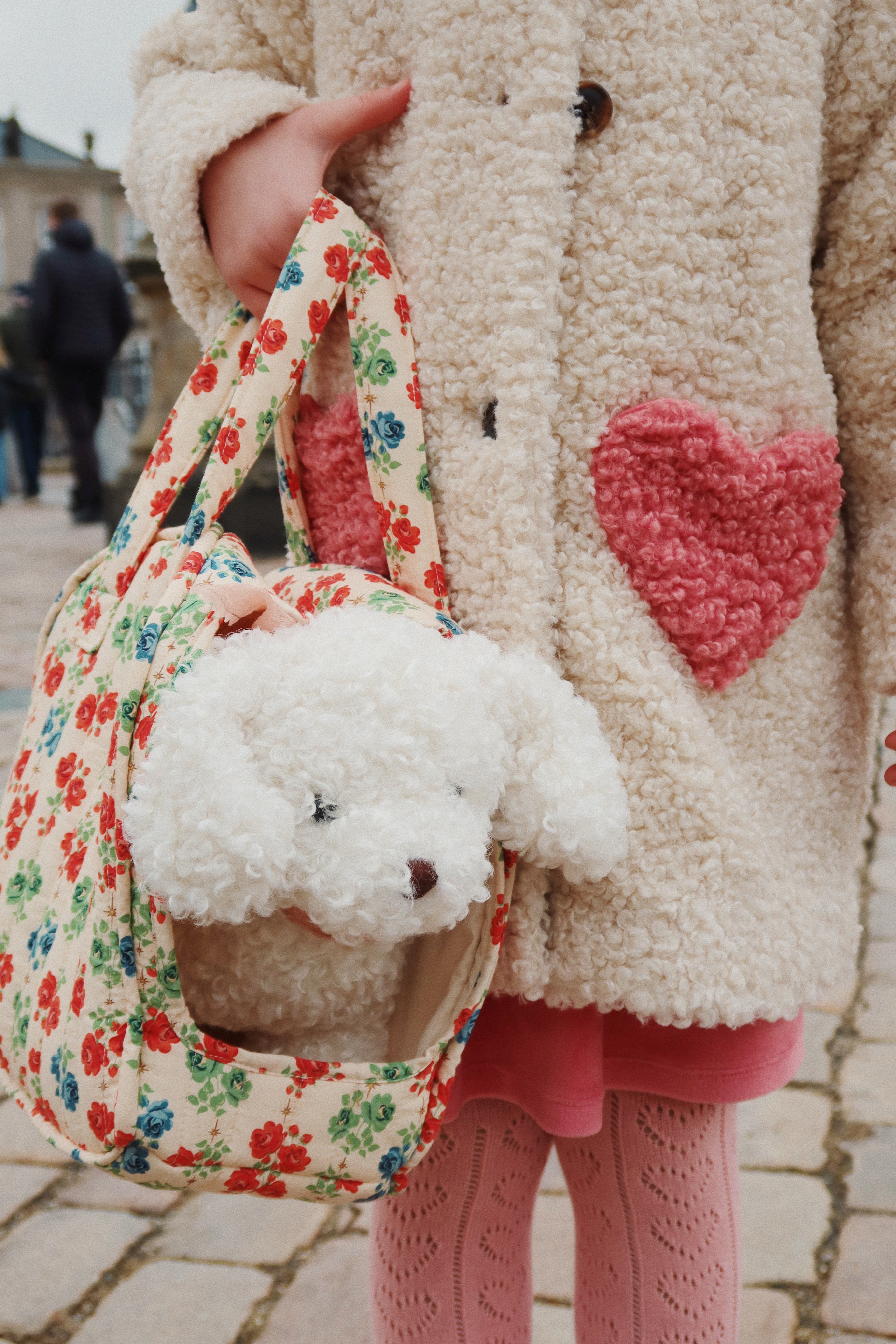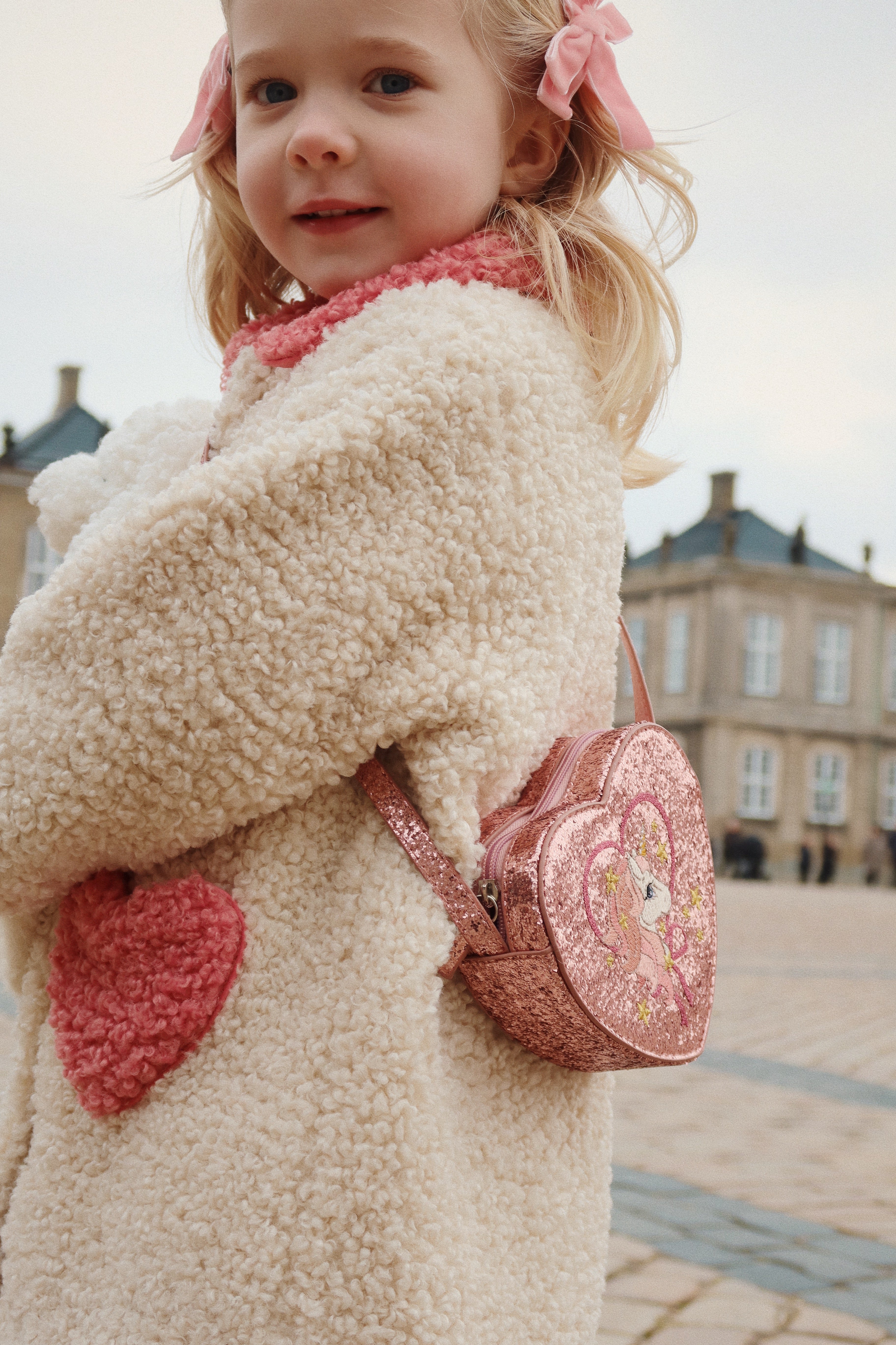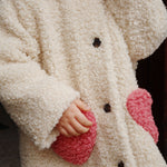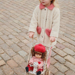 Soft and warm coat in a classic silhouette with a rounded collar, front pockets, and button closure. Materials: Main: 100% polyester Lining: 100% cotton and 100% polyester