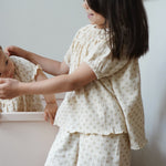 A buttery soft floral printed shorties featuring an elastic tie waist.