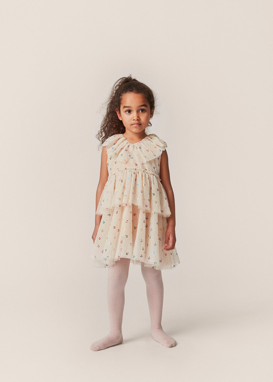 Designed with three layers. The inside layer is soft cotton, and the two outer layers are crisp tulle.