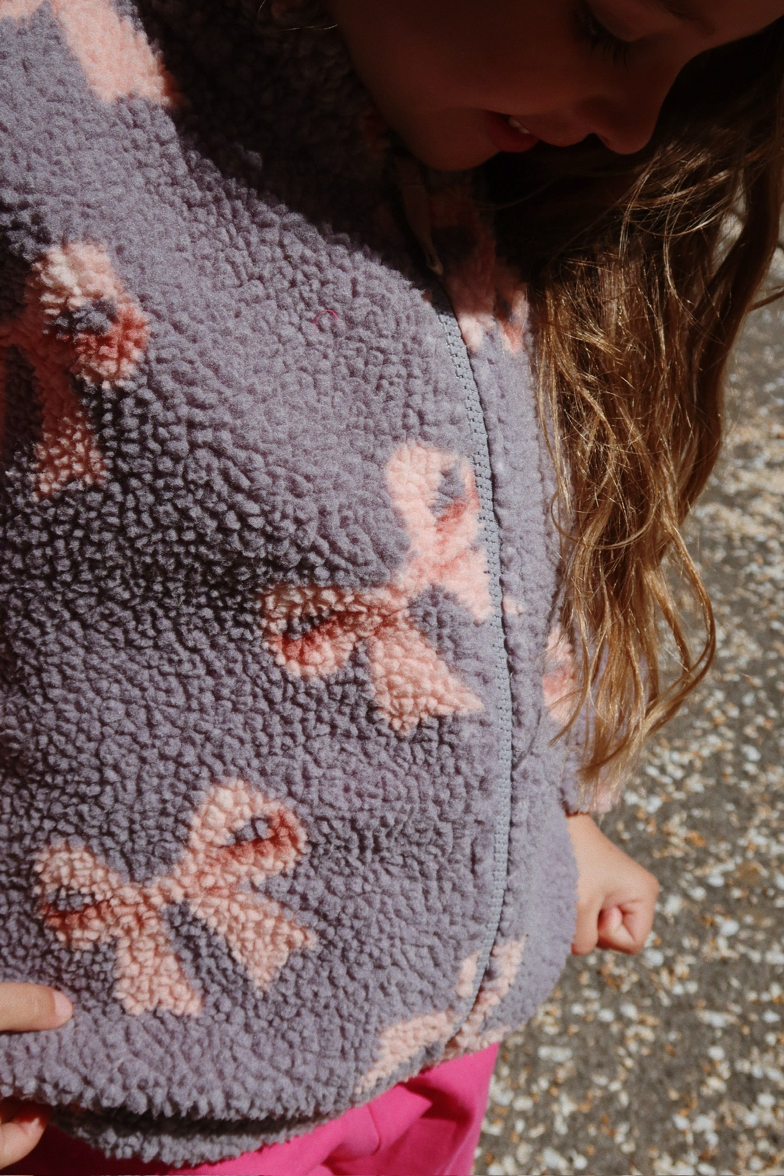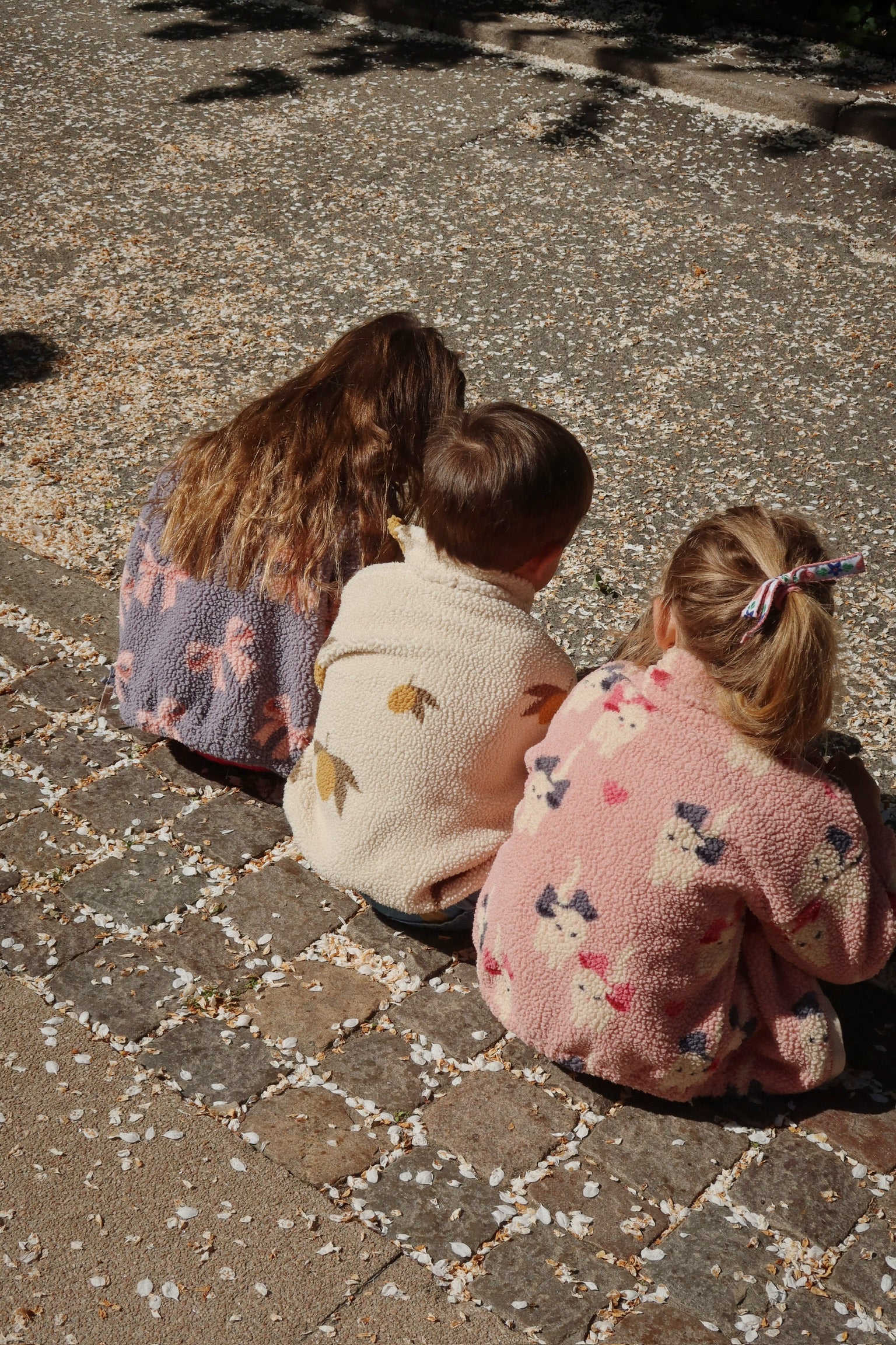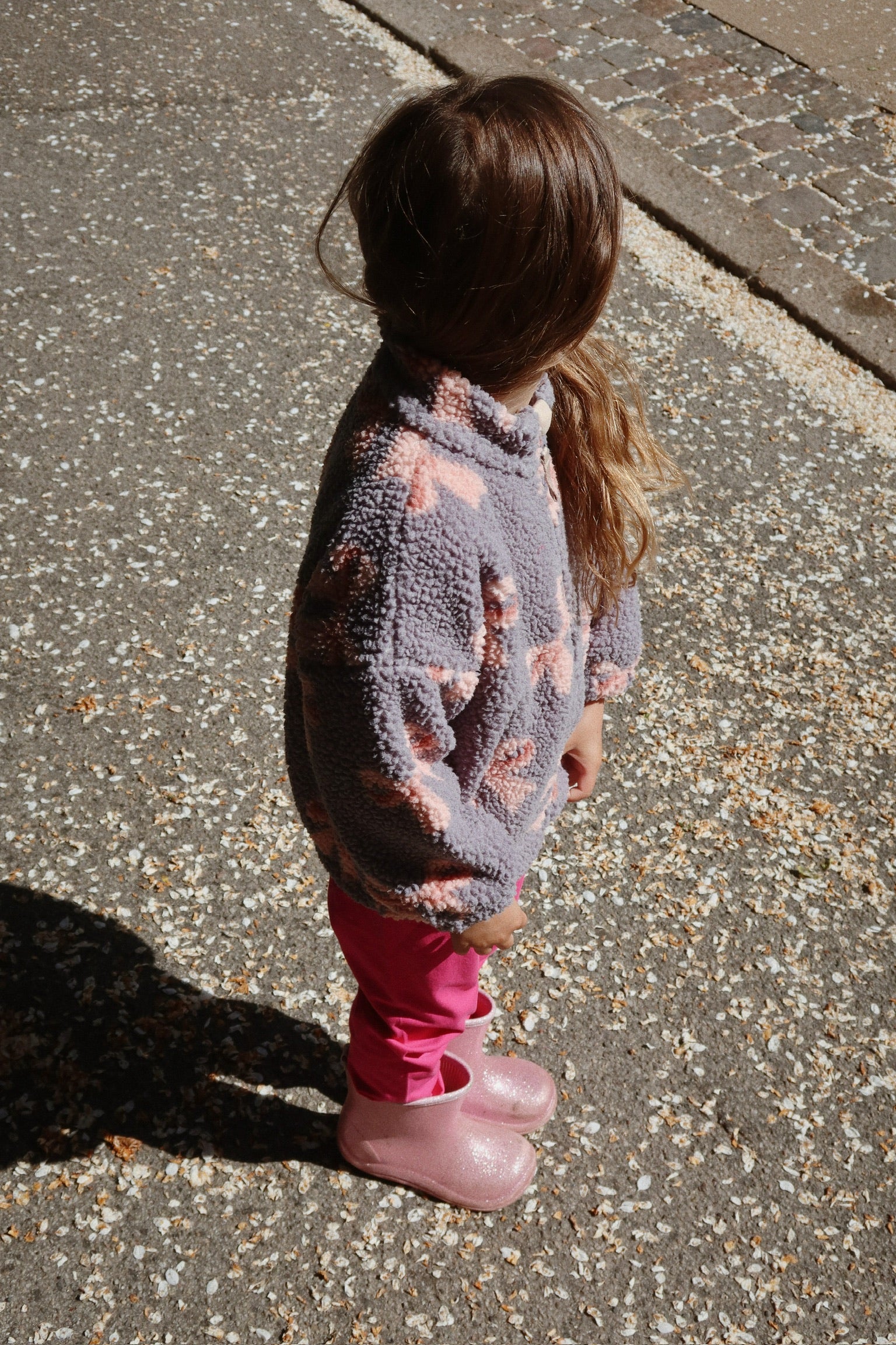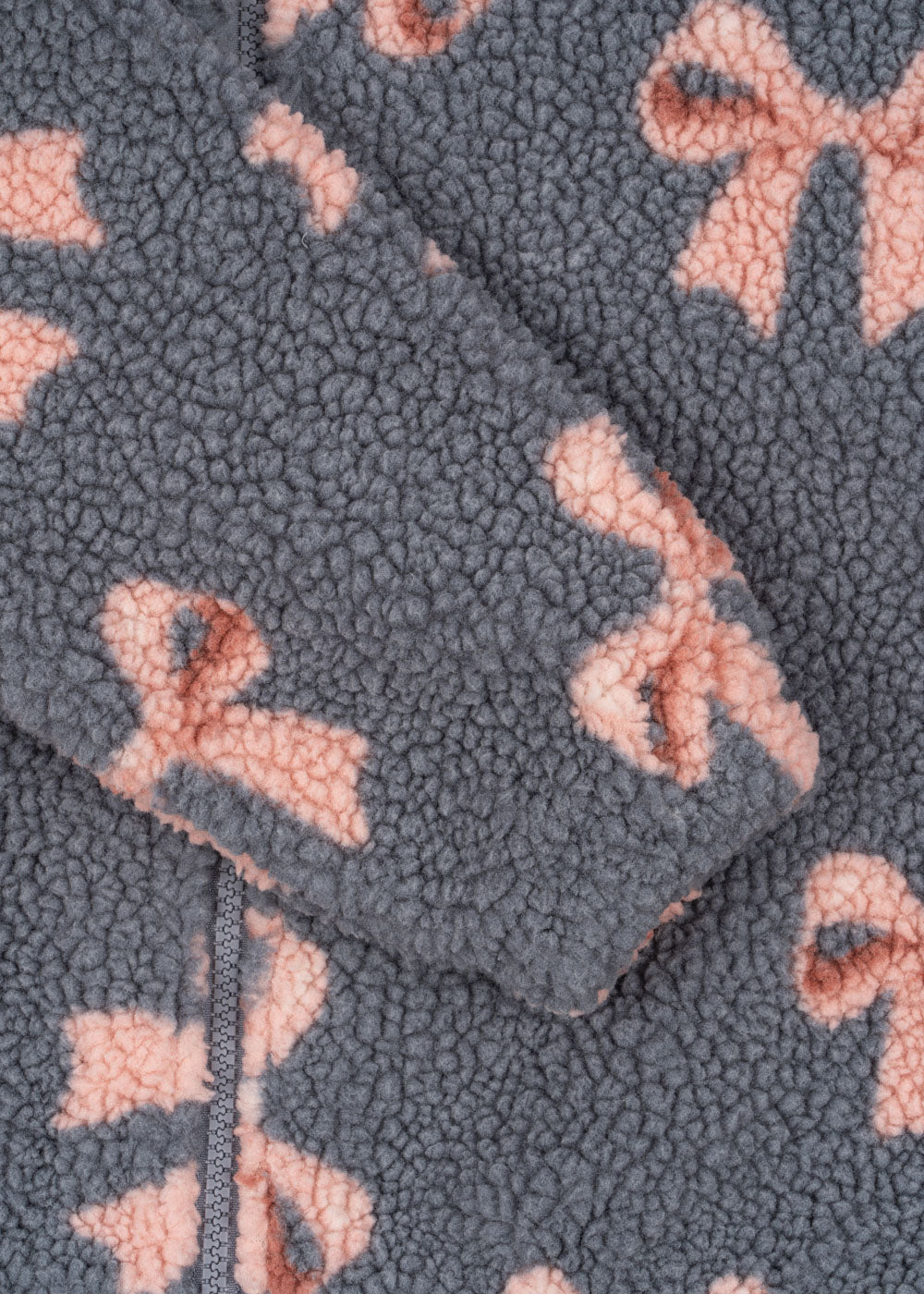 Warm pile jacket with soft inside fleece. Features a high collar and elasticated cuffs, and a full zipper closure in front that makes it easy to put on.