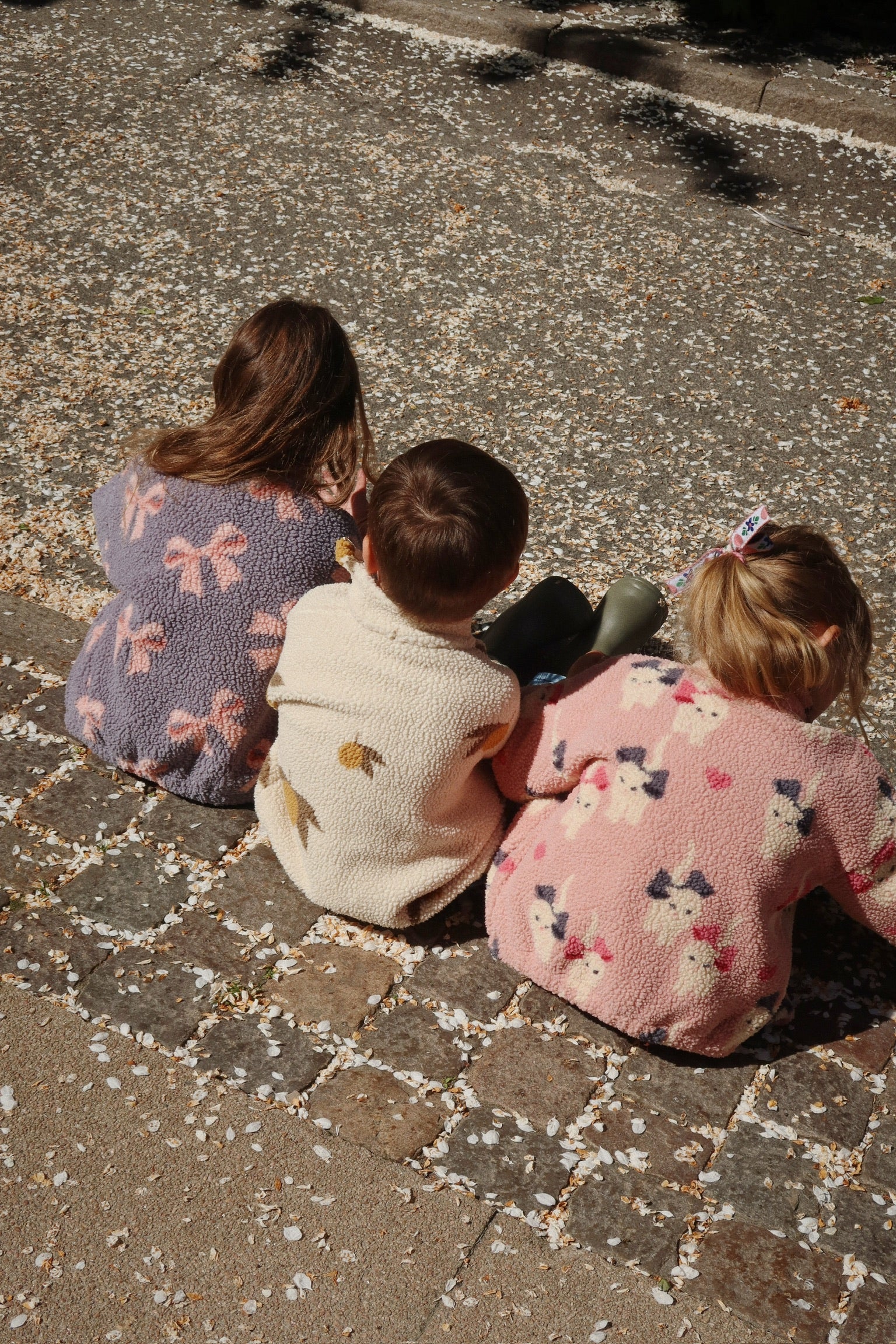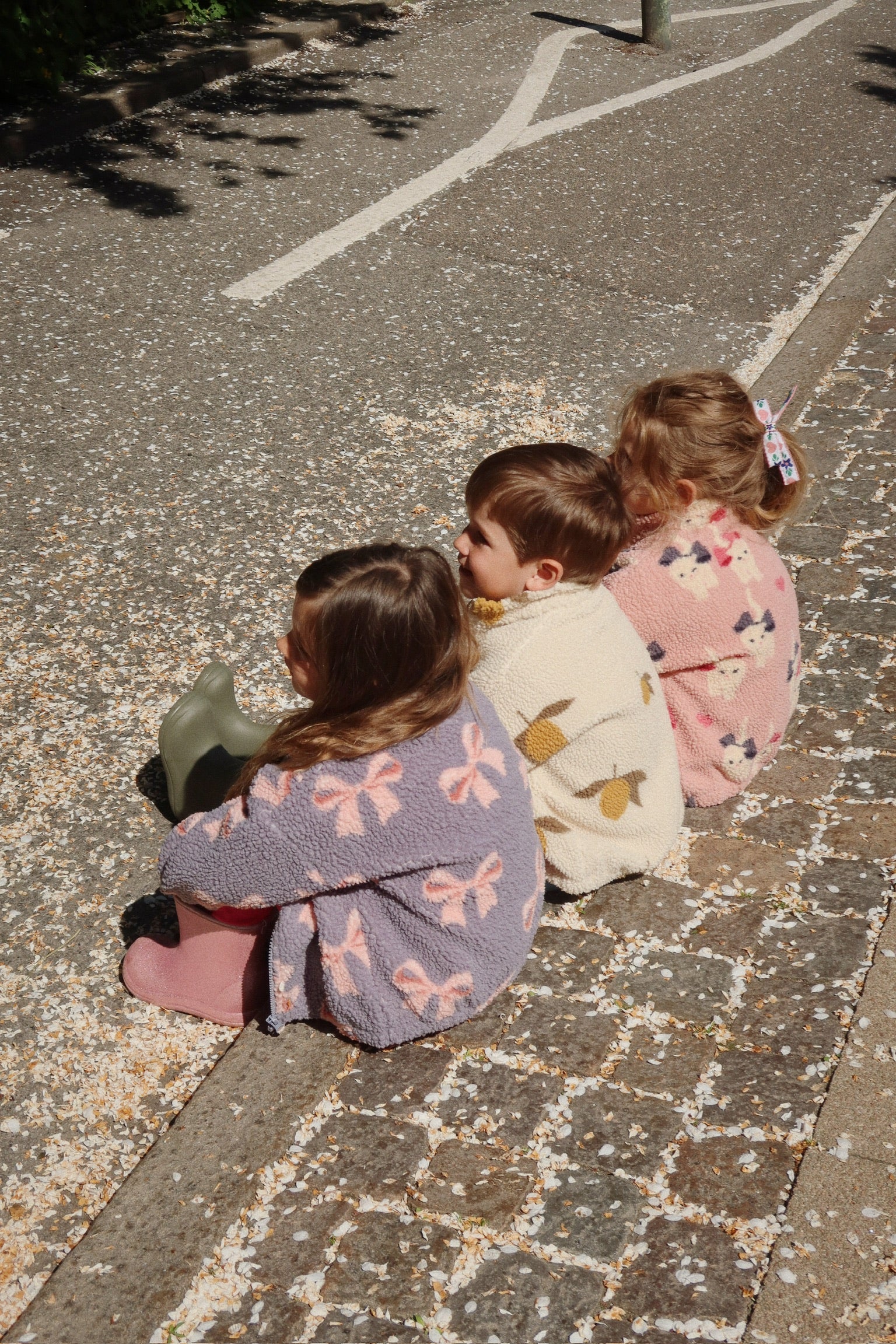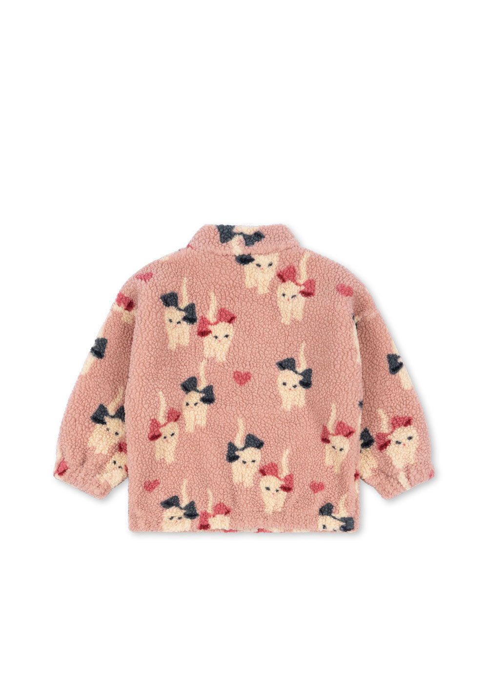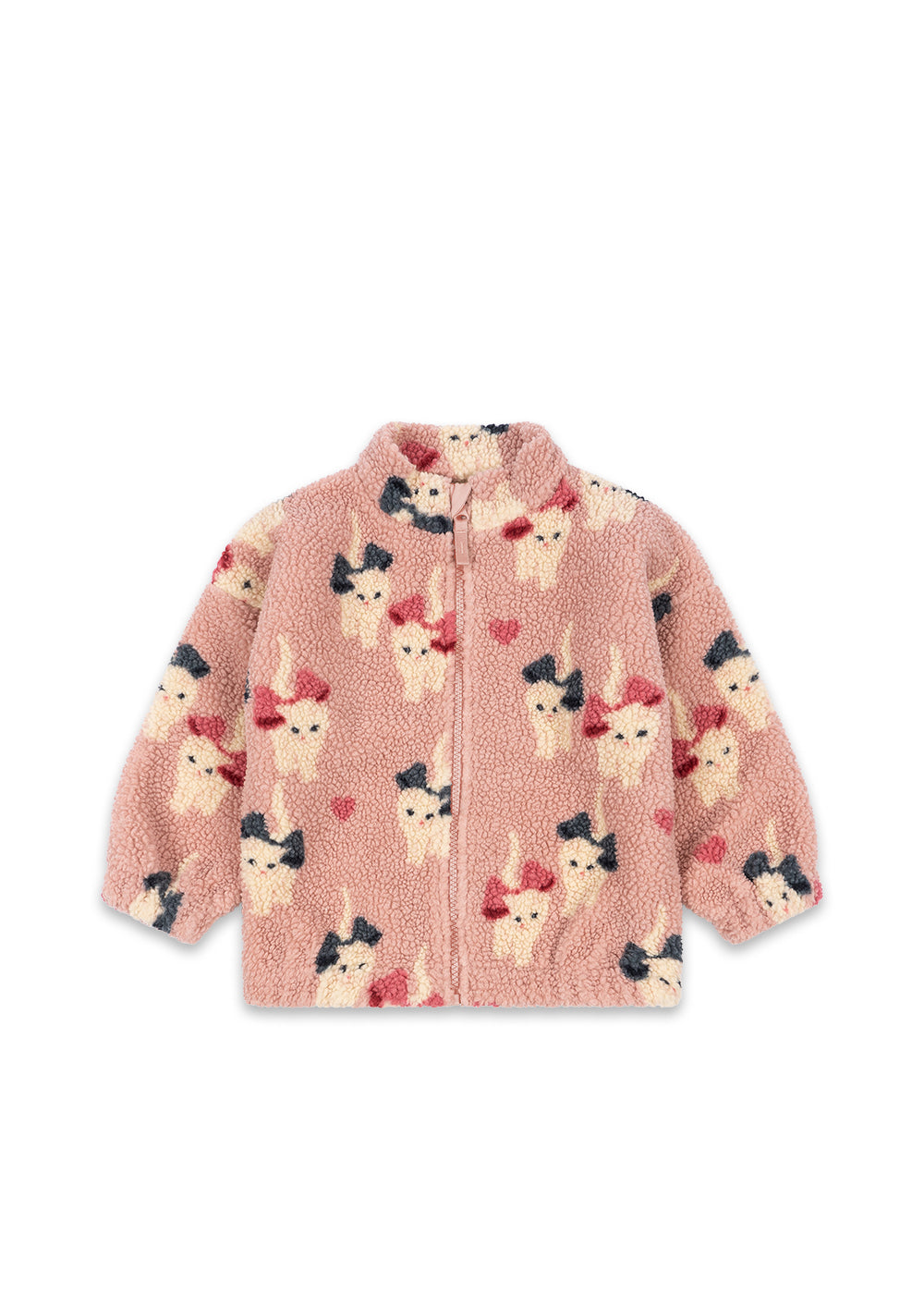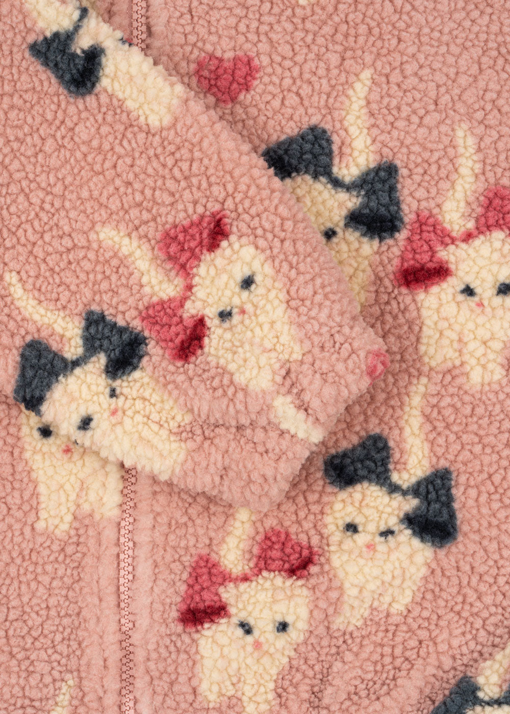 Warm pile jacket with soft inside fleece. Features a high collar and elasticated cuffs, and a full zipper closure in front that makes it easy to put on.