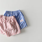 Lightweight shorts featuring vertical stripes and an elastic waistband.
