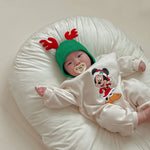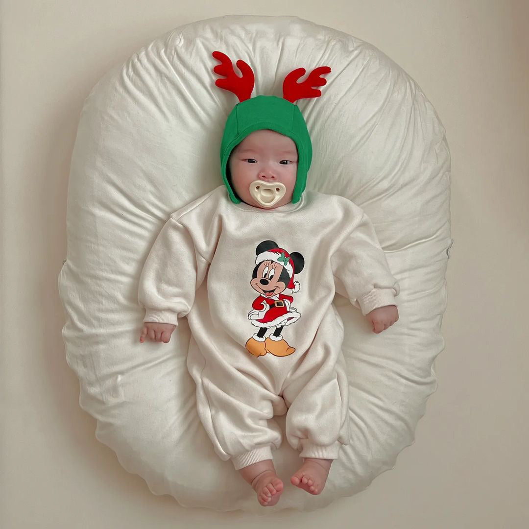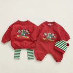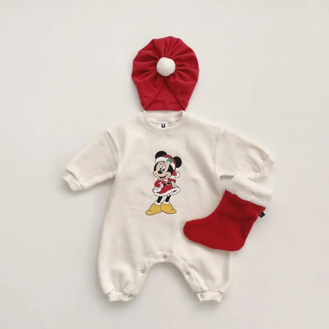 A perfectly oversized holiday crewneck romper featuring Minnie Mouse + Mickey Mouse!