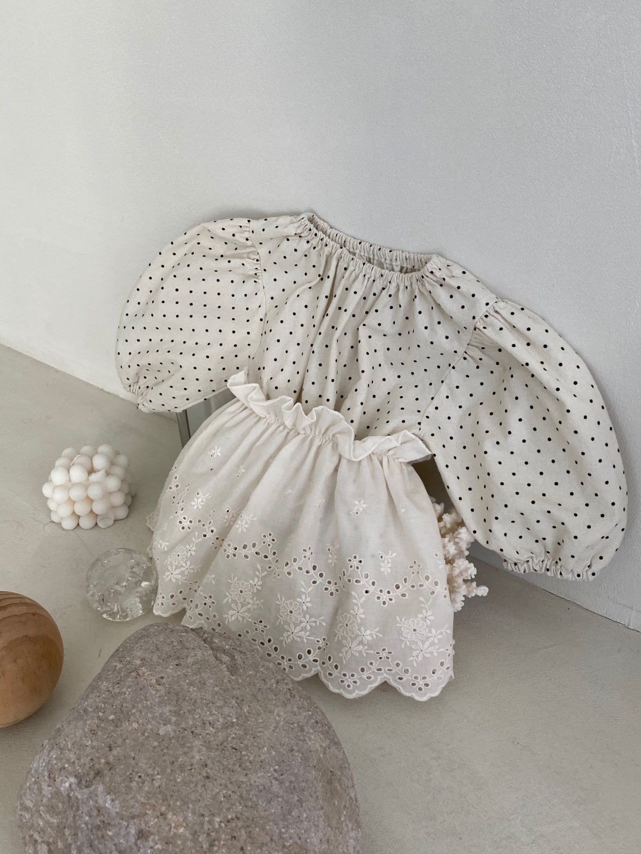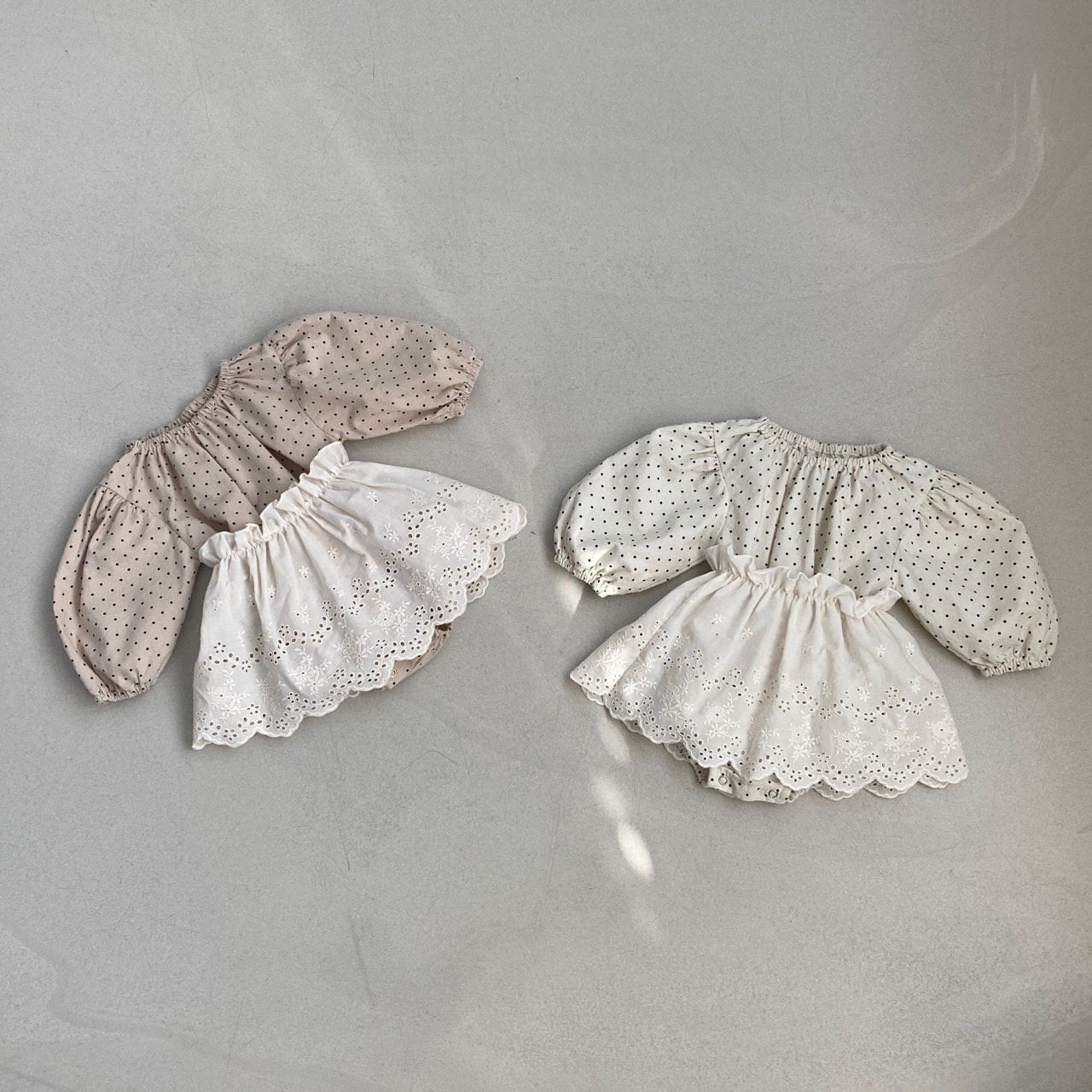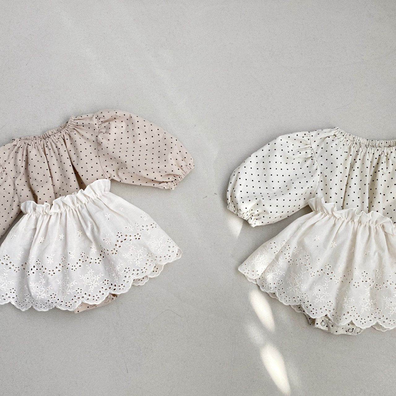 Marie Dotted Romper + Eyelet Skirt - Ivory