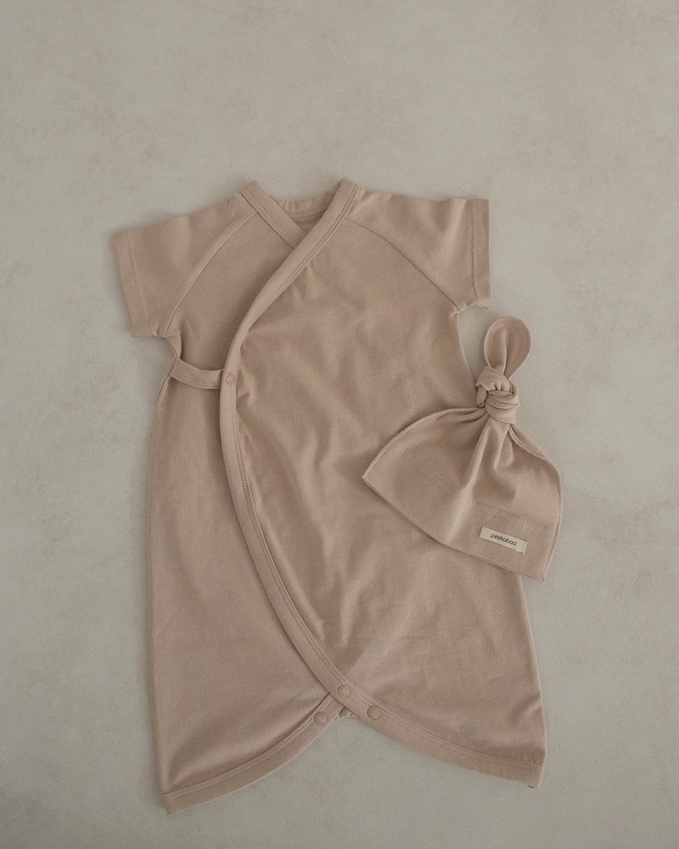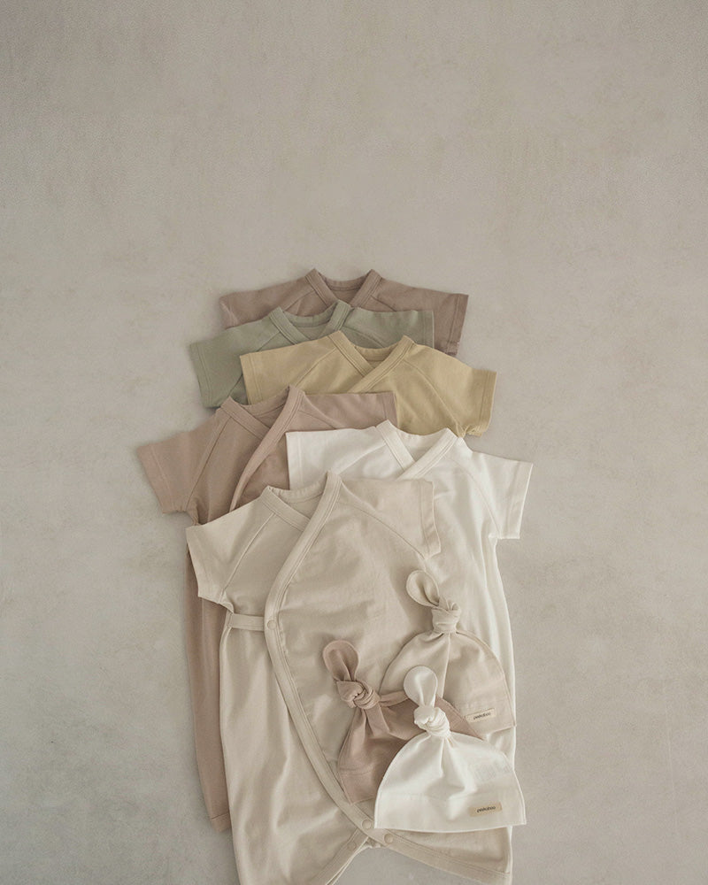 The sweetest kimono newborn onesie featuring a matching hat. The perfect going home outfit.