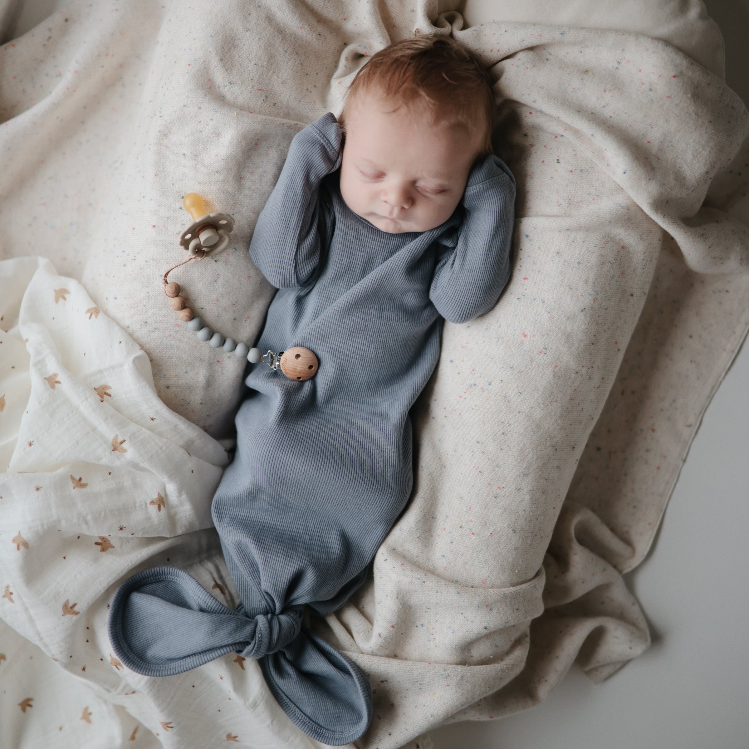 Made with organic cotton, our knotted gown is crafted with newborns in mind and features an adjustable tie closure, fold-over sleeve cuffs and shoulder overlaps. The knotted design keeps baby’s feet secure and brings simplicity to frequent diaper changes. With our rib knit fabric, your baby stays comfortable and cozy all night long. Pairs well with our beanie and bonnet.