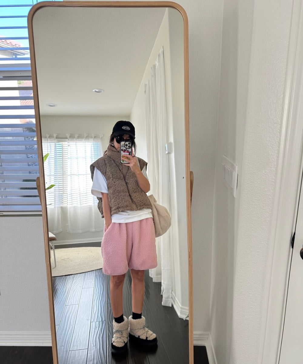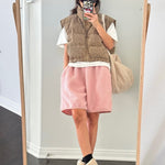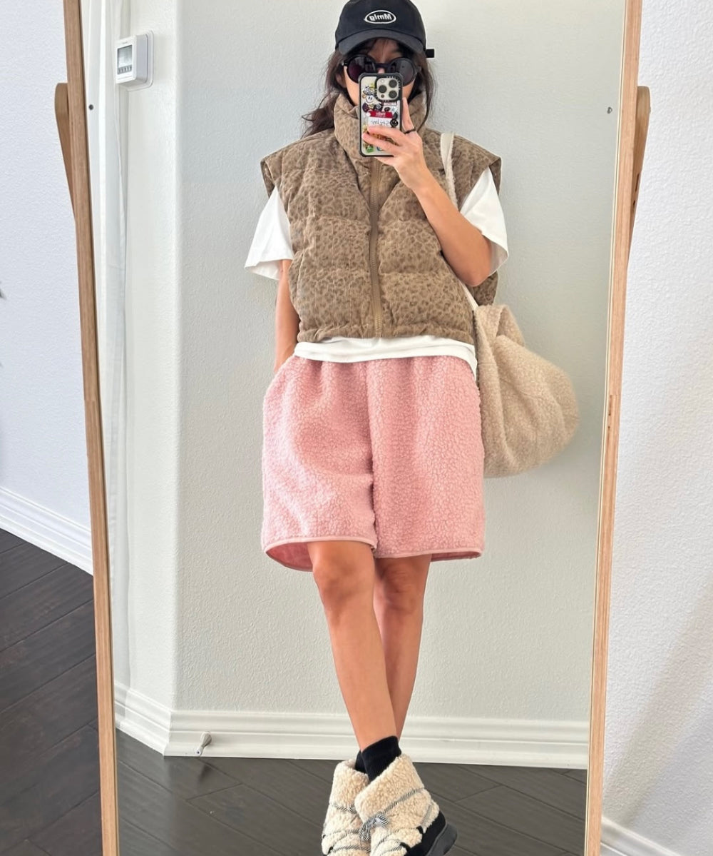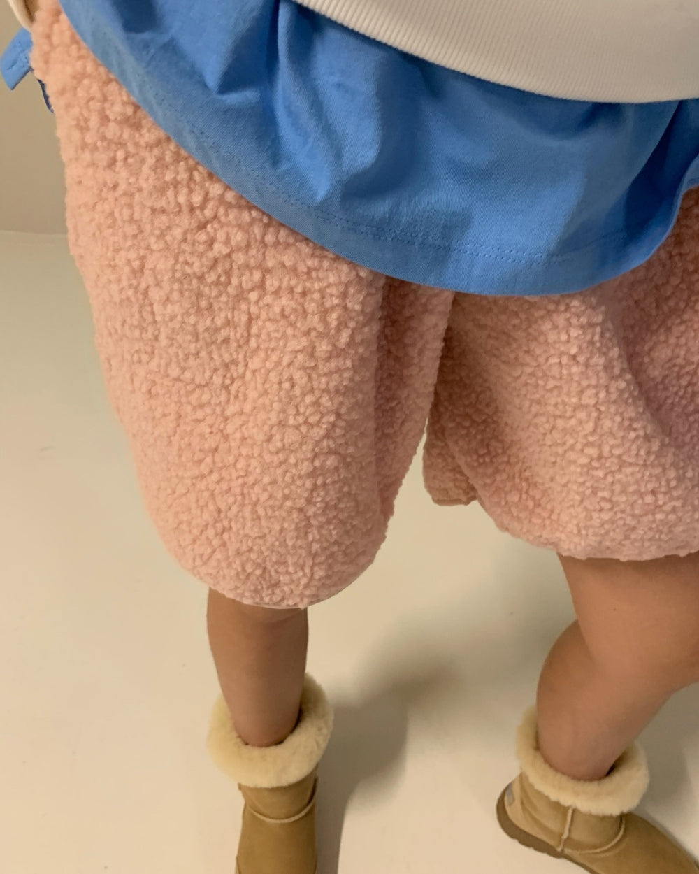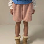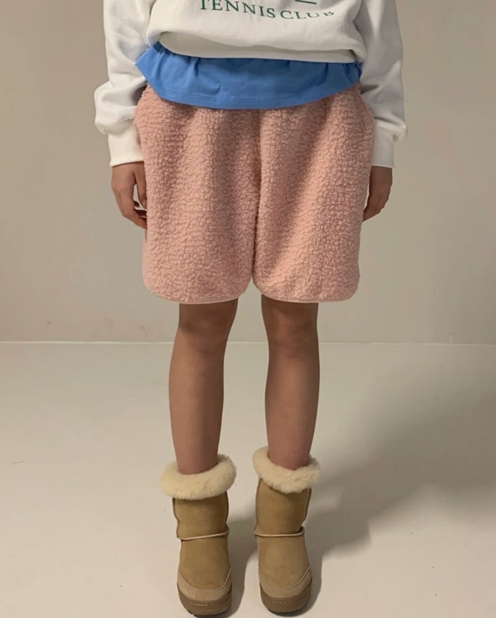 Cozy sherpa bermuda shorts featuring an elasticized waistband for ease + comfort.